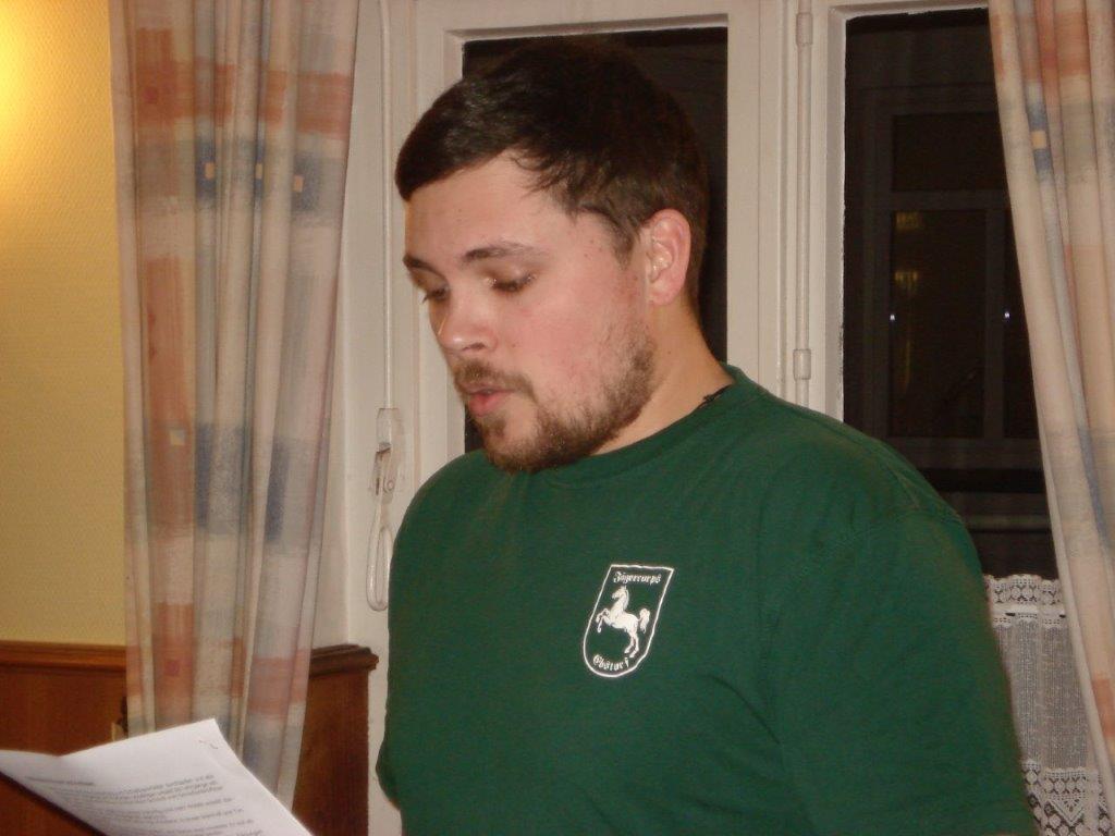 Ein weiterer wichtiger Punkt war die Wahl eines neuen Fähnrichs. Hauptmann Meier dankte dem bisherigen Fähnrich Thorsten Müller (2009 – 2026) für seinen Einsatz und ernannte ihn zum Ehrenfähnrich. In der anschließenden schriftlichen Abstimmung wurde Leon Stanze zum neuen Fähnrich des Jägerkorps gewählt.