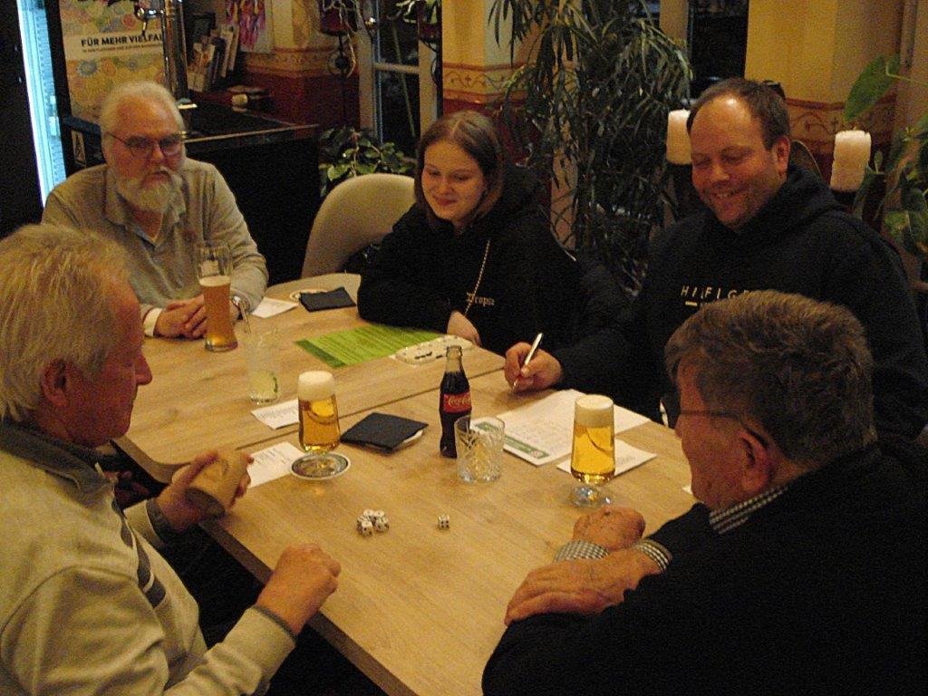 Nach der offiziellen Begrüßung begann der Abend mit einem gemeinsamen Pizzaimbiss, der für eine gute Grundlage und gesellige Gespräche sorgte. Unmittelbar im Anschluss starteten die Skat- und Knobelwettbewerbe. In mehreren spannenden Runden wurde konzentriert gespielt, gerechnet und gewürfelt.